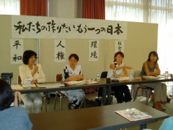 「私たちの作りたいもう一つの日本」中川智子議員・原陽子議員・社民党政策審議会杉山章子さんと(9月15日、藤沢市民会館)